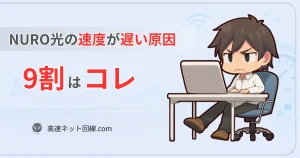NURO光の速度が遅いと言われる理由や実際の原因・対策については、以下の記事で詳しく解説しています。